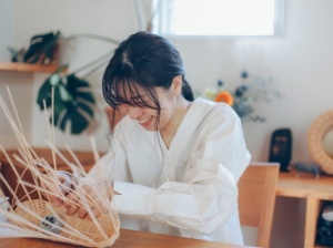 籐編みは籐とわずかな道具を使い、自分の手の感覚で編み進めます。自然素材の籐、柿渋、本革を使用して、手仕事でひと編み、ひと縫い丁寧に製作しています。セミオーダーでの製作や籐編みのワークショップも行っています。ものづくりを通して生まれるコミュニケーションで、地域の人と人とのつながりや交流を深めることができたらいいなと思っています。