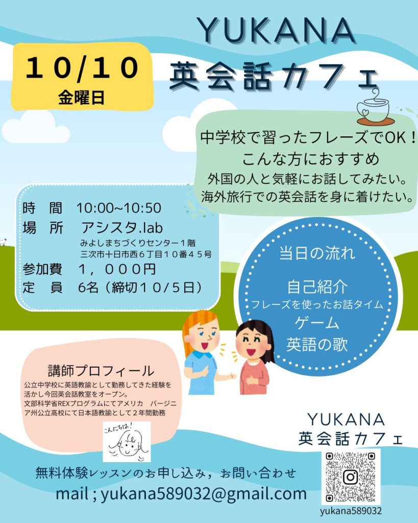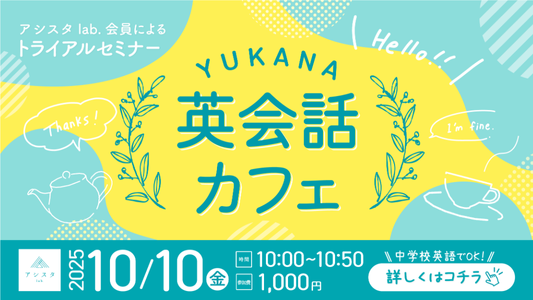 アシスタ lab.会員のYUKANAさんによるトライアルセミナー 『YUKANA 英会話カフェ』が開催されます!