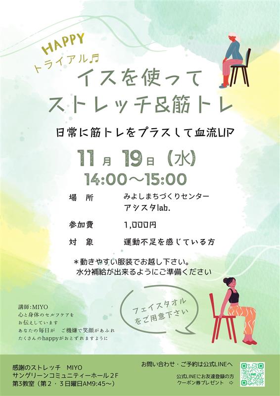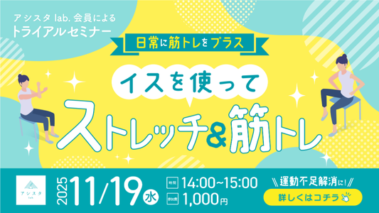 アシスタ lab.会員の下館美代子さんによるトライアルセミナー 『イスを使ってストレッチ&筋トレ』が開催されます!