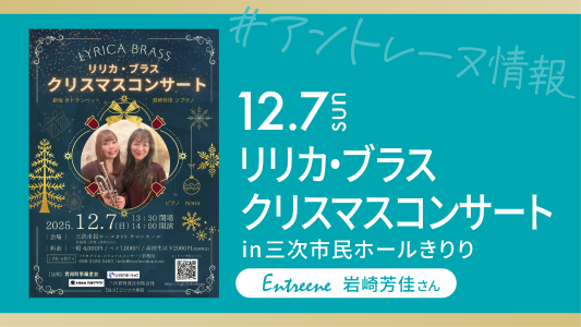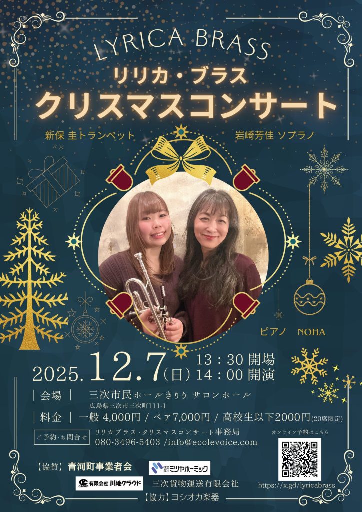 🎄岩崎芳佳ソプラノと新保圭トランペットによるユニット「リリカ・ブラス」のクリスマスコンサートご案内