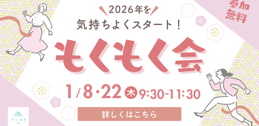 新しい年が始まり、少しずつ日常のリズムが戻ってくるこの時期。 「ひとりだと進まない作業を、落ち着いた環境で進めたい」 そんな方にぴったりの、2026年1月もくもく会のご案内です。 ◼︎1月8日(木) 9:30~11:30 お好きな作業で参加OK! 年始の慌ただしさが落ち着く頃、…