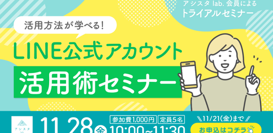 アシスタlab.会員の二岡千春さんによるトライアルセミナーのご案内です。 せっかく公式LINEを開設したけれど、 「どう活かせばいいのか分からない…」 そんな悩みを感じていませんか? このセミナーでは、参加者同士で意見を出し合いながら、 ターゲットの見直しや、お客様の目…