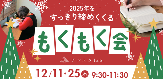 いよいよ2025年もラストスパート!年末らしい慌ただしさの中で、整える時間を持ちませんか? 12月のもくもく会のご案内です。 ◼︎12月11日(木) 9:30~11:30 テーマあり:「断捨離DAY」 一年の締めくくりに、心と環境を整える時間を 写真フォルダの大掃除、領収書の整…