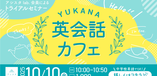アシスタ lab.会員のYUKANAさんによるトライアルセミナー 『YUKANA 英会話カフェ』が開催されます! ▼お申込みは、チラシに記載のメールアドレス・QRコードから▼ …