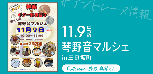 みよしアントレーヌ『雑貨喫茶 琴野音』藤原真希さん主催のイベント情報です! 今年最後の琴野音マルシェ。 ご家族と、友人と、ぜひお出かけしてみてくださいね♪ …