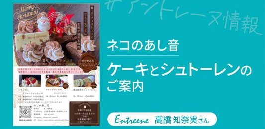 みよしアントレーヌ 高橋知奈実さん(ネコのあし音)より、素敵なお知らせです! \今年もこの季節になりました♪/ ケーキとシュトーレンのご案内です! 皆様の素敵なクリスマスに加えていただけると嬉しいです。 …
