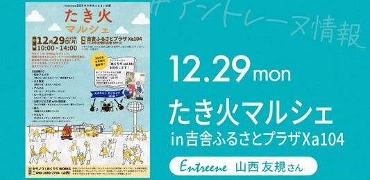 みよしアントレーヌ山西友規さん(くらし看護専門家けのひ) の主催による年末ふるまい企画『たき火マルシェ』が開催されます。 たき火を囲んでココロもカラダも温まるひとときを♪ …